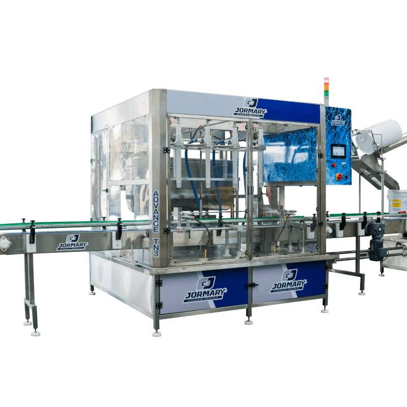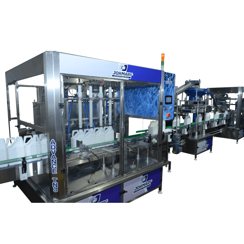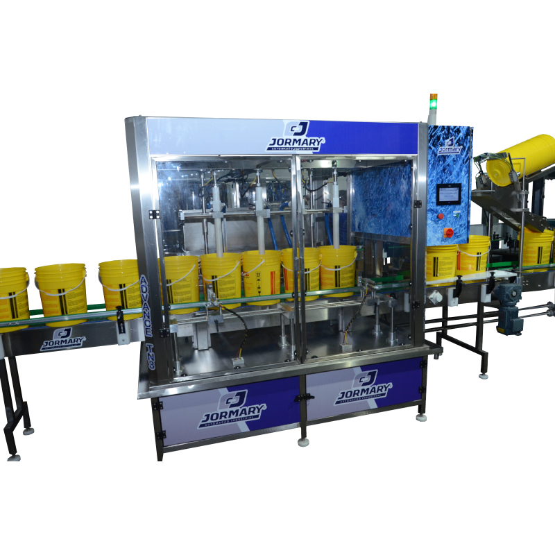 A envasadora automática Advance é composta por 2 a 24 bicos que operam por pressão positiva com dosador volumétrico, ambos fabricados em aço inox 316l, contém selo mecânico especial e rolamentados no eixo de tração. Preparada para o envase de diversos tipos de frascos, tais como galões de 1, 5, 10 e 20 litros.
