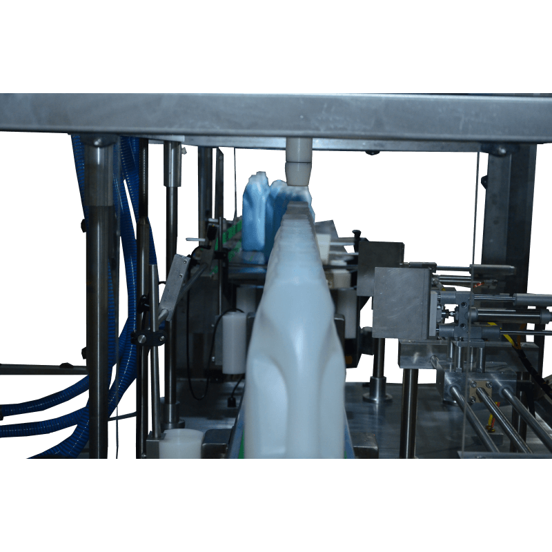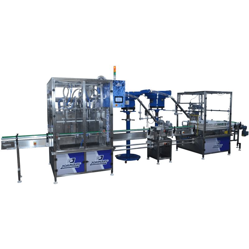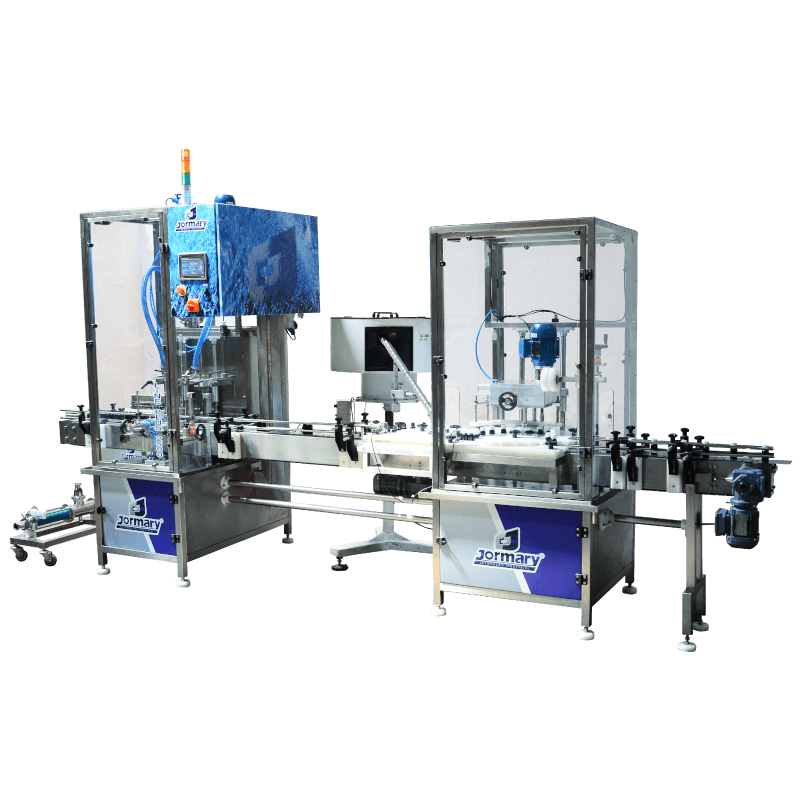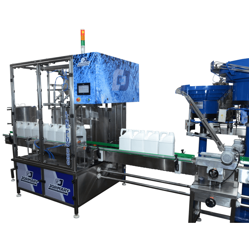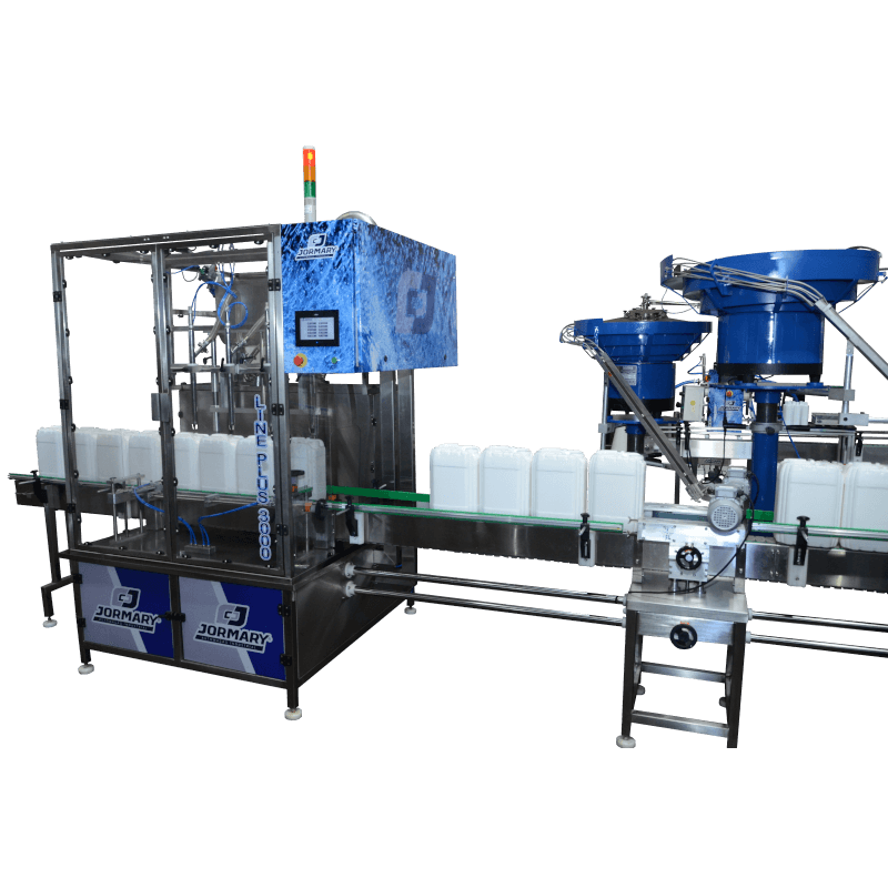 A envasadora automática Line Plus é composta por 2 ou 4 bicos que operam por pressão positiva com dosador volumétrico, ambos fabricados em aço inox 316l , contém selo mecânico especial e rolamentados no eixo de tração. (Exclusividade Jormary pois os que existem no mercado são por retentor e apoio de buchas, e não possuem vida longa).