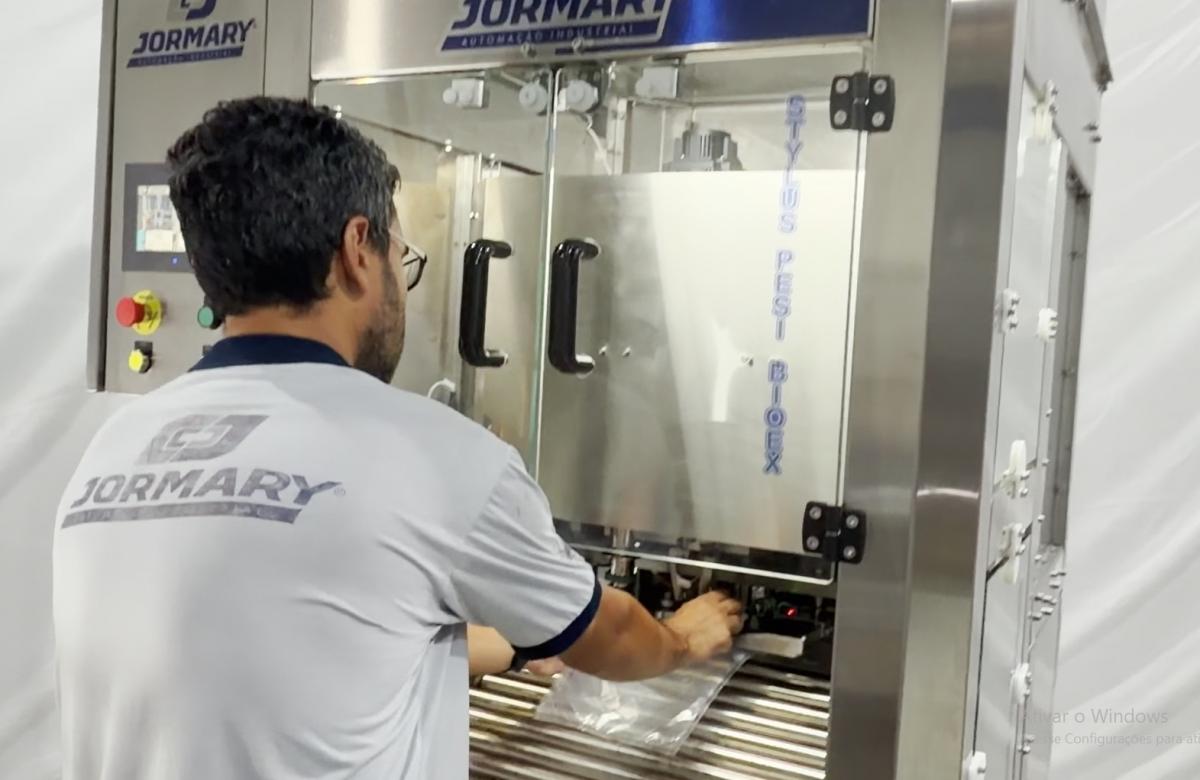 - O sistema de pesagem automático PESI JORMARY é destinado a realizar a pesagem após cada envase. Dessa forma, o envase é realizado normalmente por pressão positiva do biorreator e, após o envase ter sido concluído, a balança PESI JORMARY realiza a pesagem e envia a medição diretamente ao CLP do equipamento, o qual faz a tratativa de dosagem via receita e correção automática a cada bag.. Caso o peso esteja fora dos valores pré estabelecidos pelo usuário, os parâmetros de envase são automaticamente reajustados para que o próximo envase esteja dentro do set point.