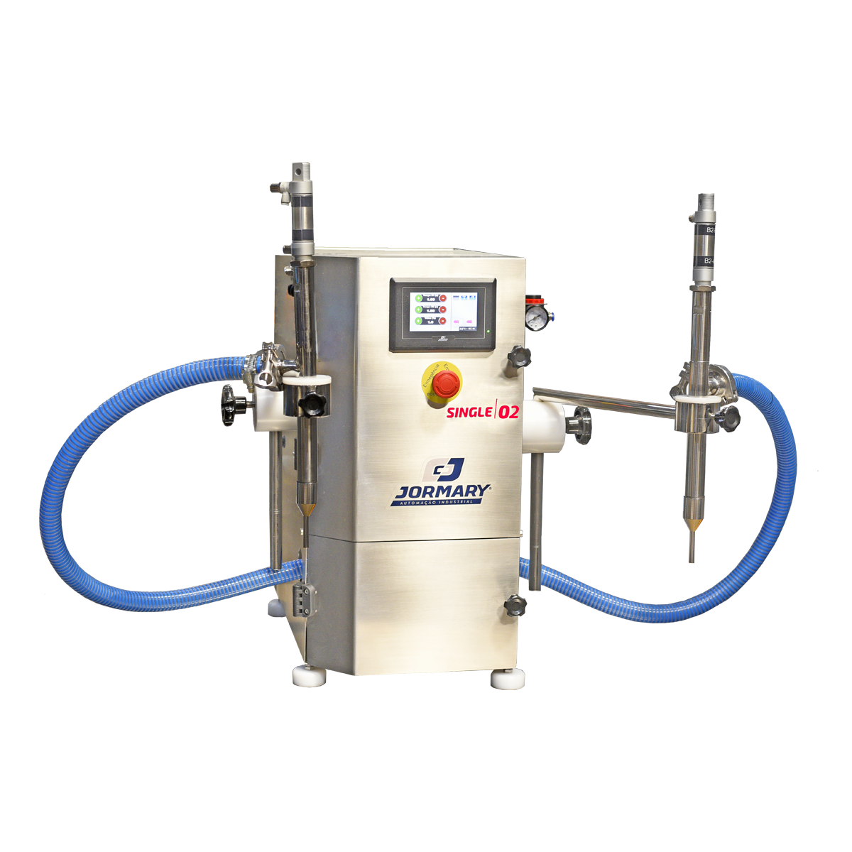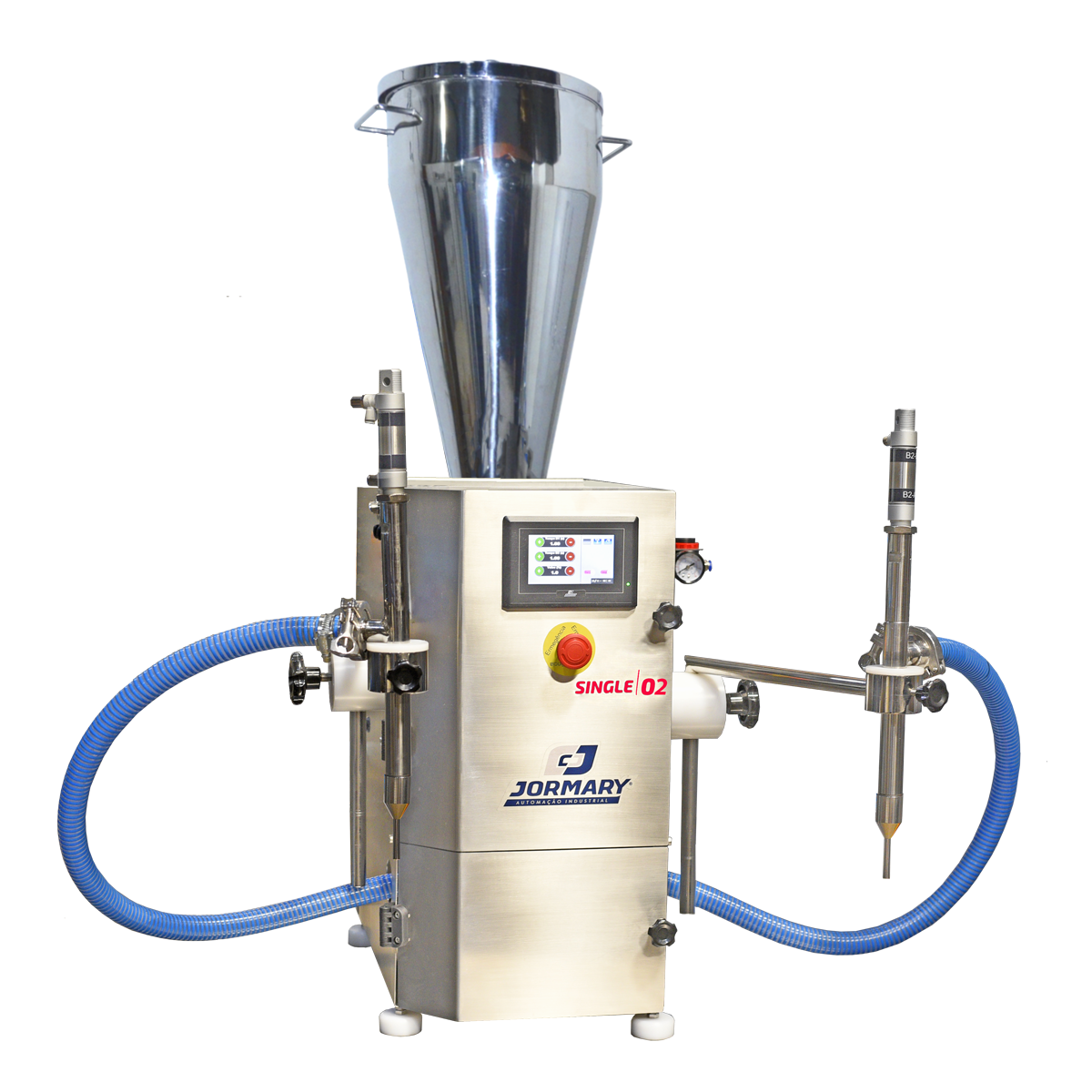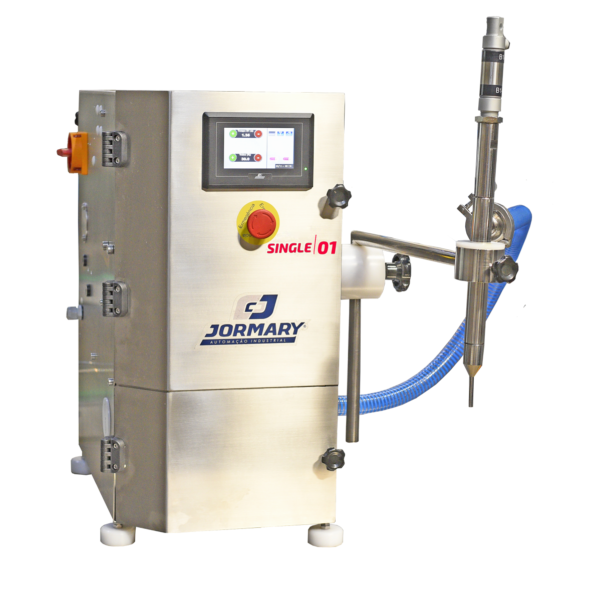 A envasadora semiautomática SINGLE opera por pressão positiva com dosador volumétrico exclusivo JORMARY fabricada em aço Inox 316L (com certificado) e vedações de viton (com certificado), o que lhe permite trabalhar com alta gama de produtos, inclusive com produtos químicos em altas temperaturas.( até 65  graus)