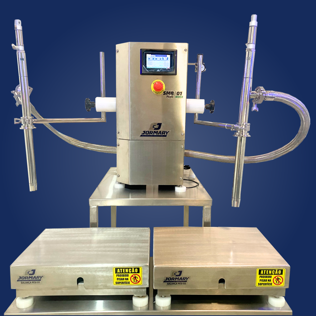 Envasadora semiautomática com corpo em inox 304 escovado, composta de 02 Válvulas de fechamento com corta gotas (bicos) ou uma válvula de fechamento com corta gotas (bicos) e pressão de ar comprimido à 6 Kgf, dosador volumétrico e conexões TC em inox 316 (com certificado) totalmente sanitários obedecendo RDC, operando por pressão positiva com suas vedações em viton ou epdm ou silicone ou atóxica. Envasa produtos líquidos, semilíquidos e viscosos, além de produtos químicos em altas temperaturas (70º), suportando pressão interna tanto no dosador volumétrico quanto na tubulação e válvula de fechamento em até 10 Kgf em volumes de 10ml a 50.000ml com precisão em diversos tipos de frascos, potes, bisnagas, garrafas, bags, Galões e bombonas. Vedações em silicone e selo mecânico O modelo SMB PUS PESI Bioex possibilita envasar volumétricamente e com checador de peso automático (balança automatizada) com seu sistema exclusivo de pesagem modelo PESI.