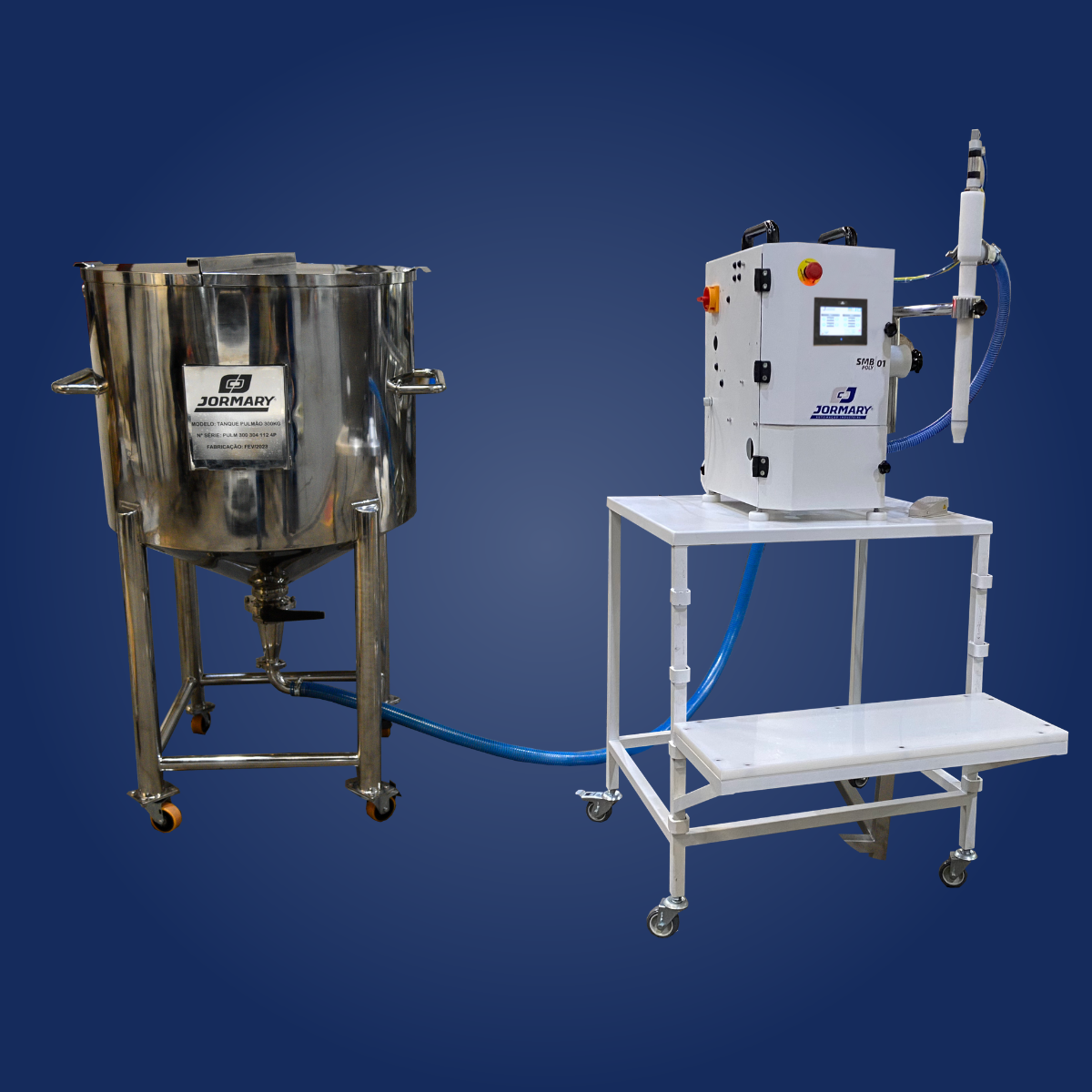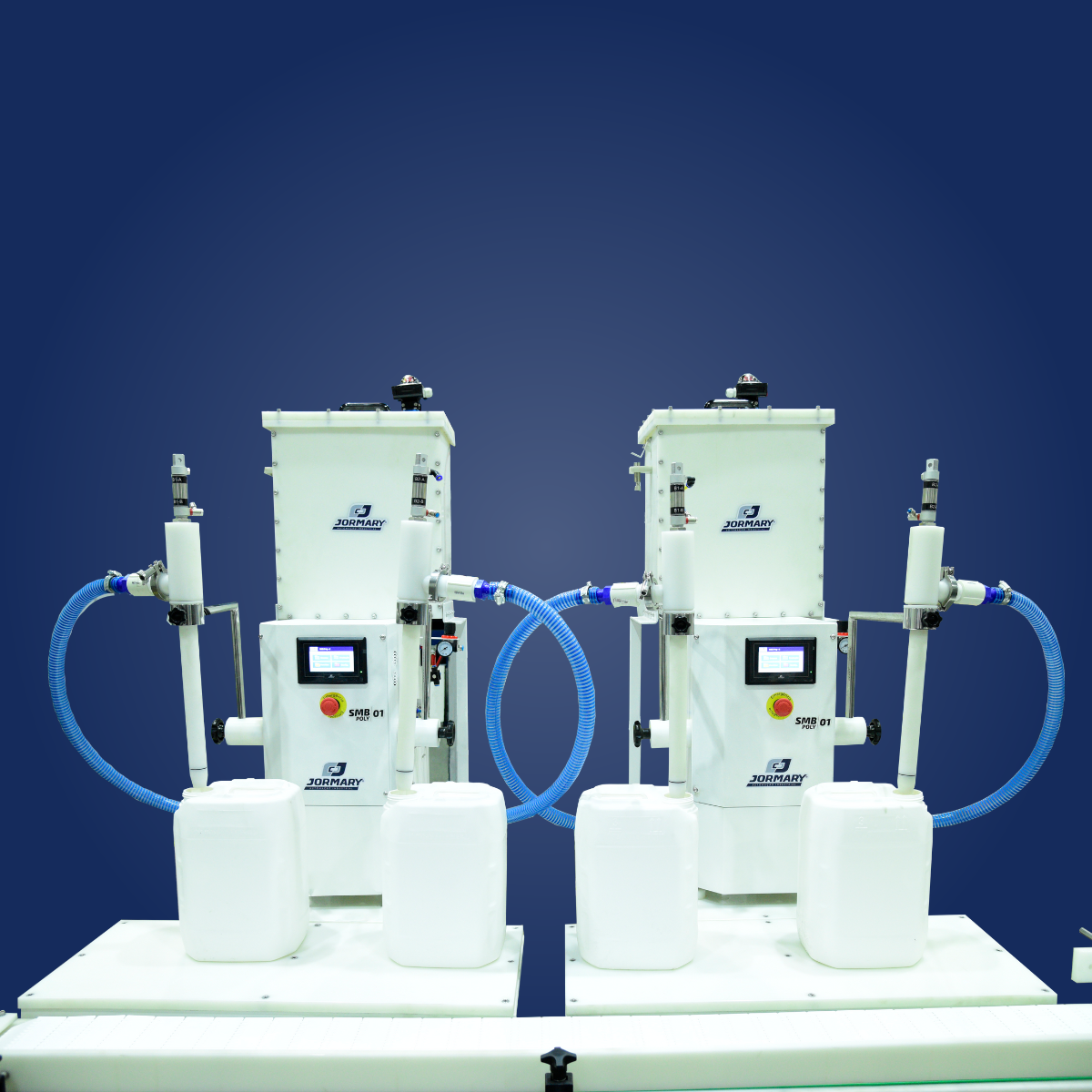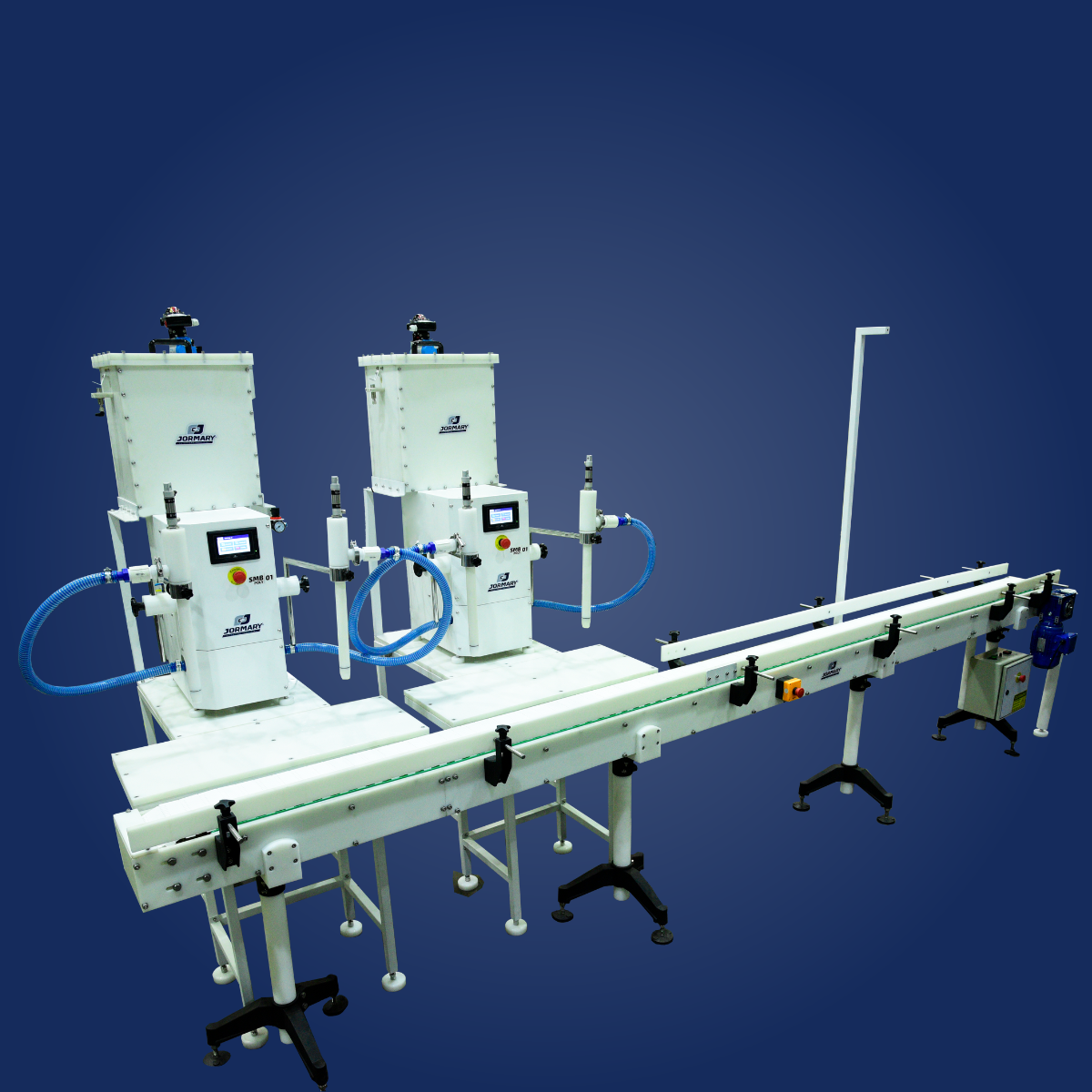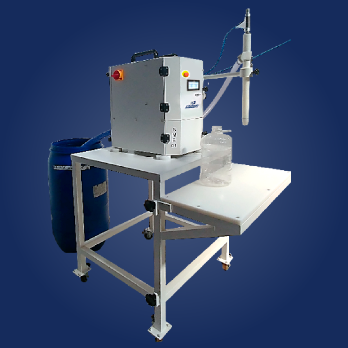 - Succionando direto de um tanque pulmão ou de mistura sendo a altura da mesa de envase ou vindo de um mezanino com precisão predeterminada.