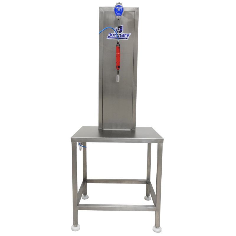 A estrutura é toda fabricada em Aço inox 304, garantindo extrema resistência e vida útil do equipamento. Permite o operador rosquear diversos tipos de frascos sem realizar esforço físico.